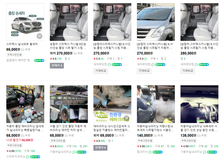 네이버 쇼핑몰에서 스타렉스 실내크리닝 검색하시면 출장세차해주는분들있어요
