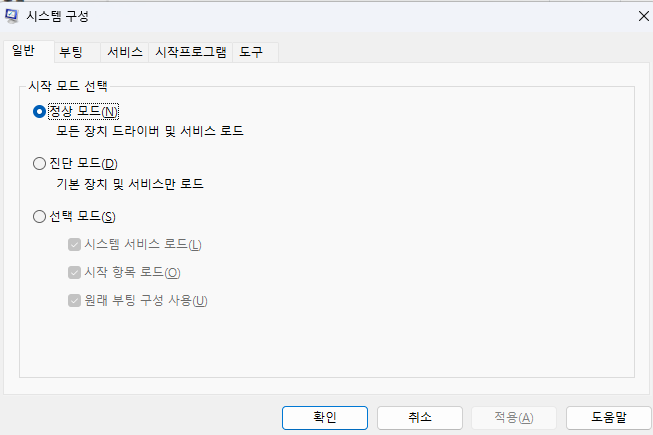 추가로 검색 - 시스템 구성에서 설정이 아래와 같은지 확인해 주세요.